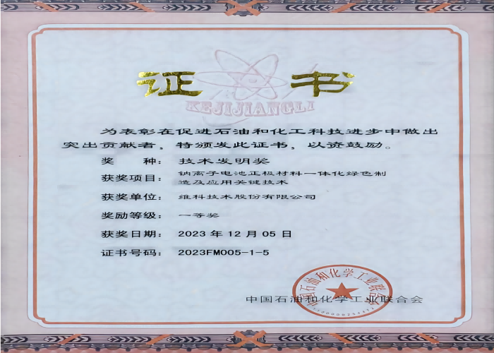The conference listed 2023 China petroleum and chemical industry scientific and technological innovation awards winners. Veken Technology won the first prize for technical invention. And, its chief technical consultant, Professor Ma Zifeng from Shanghai Jiao Tong University gave a special lecture, introducing the development opportunities and industrialization challenges of sodium ion battery, which received high attention from the conference attendees.