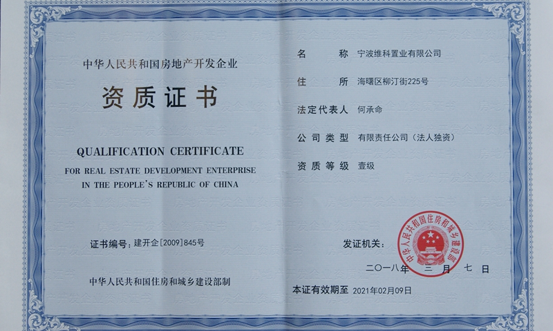 維科置業(yè)再次順利通過(guò)房地產(chǎn)開(kāi)發(fā)一級(jí)資質(zhì)延續(xù)