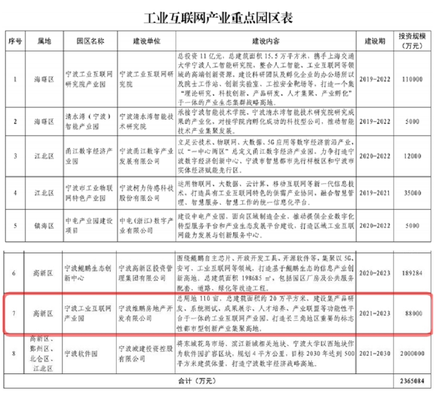 2021年7月2日,寧波市制造業(yè)發(fā)展高質量領導小組辦公室印發(fā)關于《寧波市打造工業(yè)互聯(lián)網領軍城市建設方案》的通知,由維科集團房產事業(yè)部下屬寧波高新區(qū)云羿開發(fā)建設有限公司投資建設的高新項目(即寧波工業(yè)互聯(lián)網產業(yè)園)被該建設方案列為寧波市工業(yè)互聯(lián)網領域八個重點園區(qū)之一。