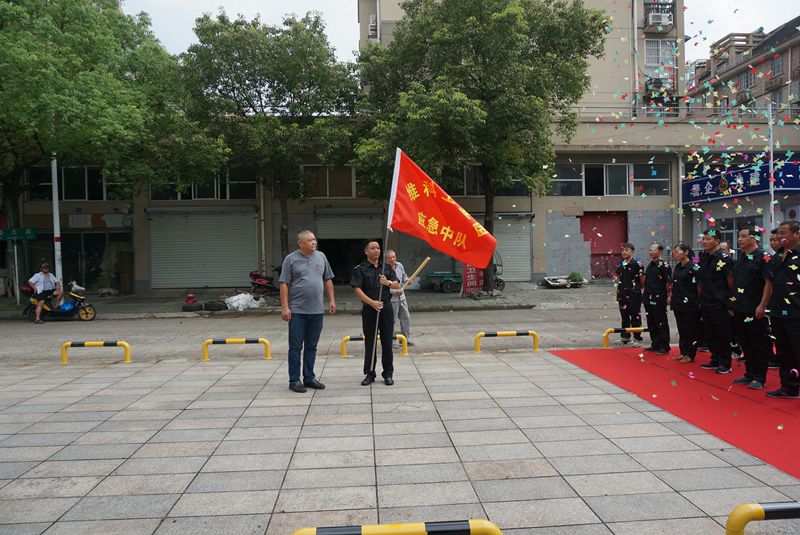 朱隊長向園區(qū)應(yīng)急中隊授旗