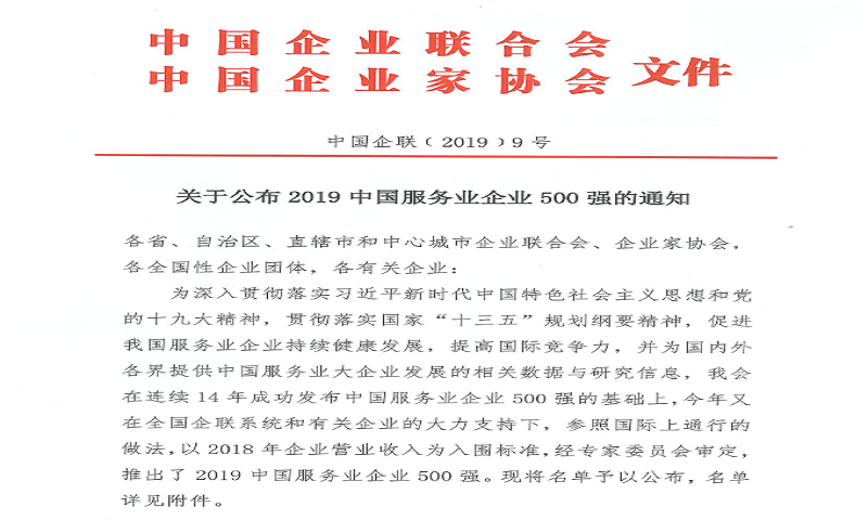 維科集団は「2019年度中國サービス業(yè)トップ500企業(yè)」の栄譽を獲得