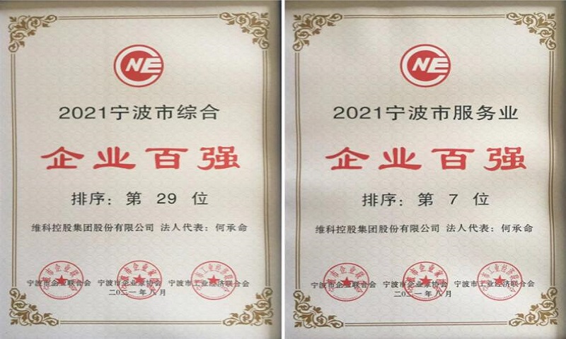 VEKEN集団は2021寧波市総合百強企業(yè)、サービス業(yè)百強企業(yè)の栄譽を獲得