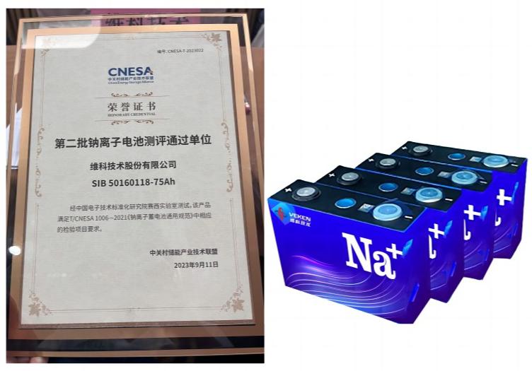 2023年9月11日,工信部綠色電池重點實驗室成立大會暨學(xué)術(shù)委員會年度工作會在北京成功召開,同時頒發(fā)了全國第二批鈉離子電池測評通過單位證書。在此次測評中,共有8家企業(yè)成功通過了測評,其中維科技術(shù)股份有限公司的SIB 50160118-75Ah鈉電池以卓越的技術(shù)研發(fā)和出色的產(chǎn)品性能通過了鈉離子電池測評。