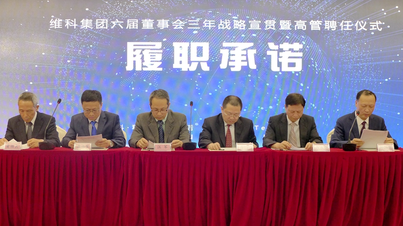 2018年5月18日,在維科集團(tuán)成立二十周年之際,六屆董事會(huì)戰(zhàn)略宣貫暨高管聘任儀式在總部大樓20樓會(huì)議中心隆重舉行??毓晒径O(jiān)高、各部門助理級(jí)以上干部、委派責(zé)任董監(jiān)事、企業(yè)管理團(tuán)隊(duì)代表、黨工團(tuán)及青年代表等近70人參加本次大會(huì)。