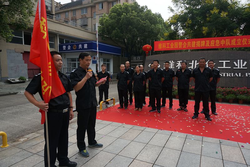 接著,園區(qū)應(yīng)急中隊隊員入場,朱孝松代表維科控股集團向園區(qū)應(yīng)急中隊授旗,應(yīng)急中隊隊員代表進行了宣誓。